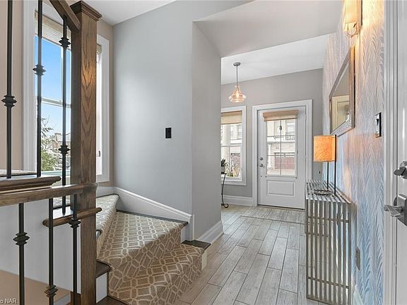 A RARE find in Canada's prettiest Town... Live your best life in this light and bright END UNIT lock 'n go home in the heart of Niagara-on-the-Lake! One of the largest units at St. Andrews Glen with 2,081 square feet (not including basement) and 9' ceilings on the main and 2nd floors, this unit is rare as there are only two of this model in the entire complex. NOT stacked/staggered, this is a two-storey + ELEVATOR townhome with NO neighbour above and NO neighbour below. It also has a full-sized DOUBLE car garage and parking for up to 3 cars on the driveway! Boasting loads of outdoor space with (6) walk-outs to 3 private upper balconies and 3 walk-outs on main floor to covered patios plus a covered front porch, you will enjoy light from sunrise to sunset on this PREMIUM parkette lot! Enjoy the open concept main floor with 2-storey ceiling, porcelain hardwood-style flooring, oak staircase and upper loft where you can take the ELEVATOR down to the kitchen for a snack and then down to the basement to grab a bottle of vintage wine from your 250 bottle wine fridge. The over-sized white kitchen features leathered granite countertops with nearly 30' of working space including 14' breakfast bar, stainless steel premium appliances, subway tile backsplash and many pot lights. This home is sure to impress with over $100k in upgrades!!! Walk to the shops on Queen St, local wineries, pubs, parks, community centre, library and Lake Ontario sunsets! DON'T DELAY, ACT TODAY! 2020-12-09