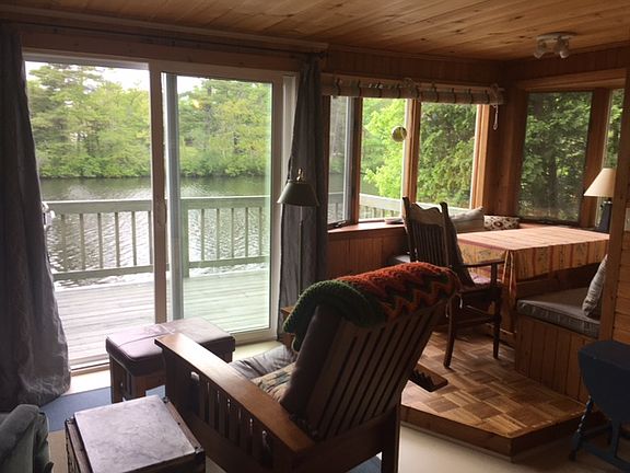 Year-round fully furnished waterfront cottage with 178ft shoreline on Cedar Lake. Peaceful sanctuary setting, surrounded by trees but only minutes from mass pike access. Newer roof, windows, doors, insulation and hot water tank. Low maintenance. Full walkout basement, great storage, expansion possibilities. Dock and two canoes are yours to enjoy. Large deck with panoramic south western views (sunsets!).