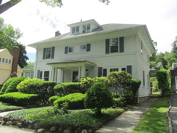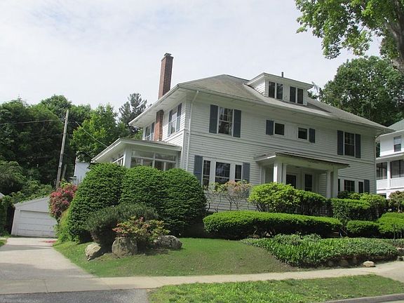 Wonderful established neighborhood with lovely homes, you will find this four square colonial with very spacious rooms, beamed ceiling LR w/fireplace and built-ins with access to a screened porch, dining room with leaded glass china cabinet, open kitchen with center island and bay window overlooking back yard, .5 bath, entrance foyer with lovely stairway, hardwoods throughout first floor. Second floor open landing with built in linen and shelving, master with 3/4 bath directly outside the door, full tiled 2nd full bath, 3 additional bedrooms with hardwoods, 3rd floor walkup to home office with skylight and built-ins. Walk-out basement, garage may not be usuable in current condition. House needs to be painted and will not go FHA, updates necessary to make this home shine again.