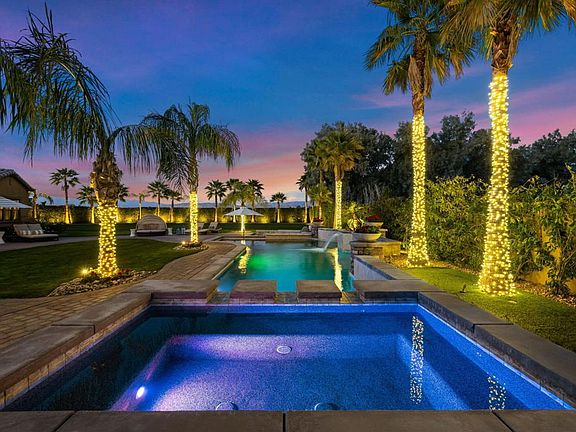 This exquisite 4 bedroom, 4.5 bath, plus full-size office, dining room, & large media room offers unparalleled elegance, quality and functionality. Toll Brothers spared no expense in building an authentic Tuscan home using materials such as rough stone, solid wood doors, & ''heavy hand'' wood beam ceilings. Situated on the largest lot in the community, a prime corner lot, measuring 28,750 sqft with breathtaking mountain views. Inside, you'll find a desirable open floor plan with soaring ceilings & views of the resort-like outdoors. The great room features a large traditional fireplace & a designated bar area with wine fridge and bar seating. The primary suite opens to the back yard & is situated away from the other bedrooms. The office has beautiful wood tile floors, overlooks a charming inner courtyard, & provides access to the ensuite casita. The open kitchen features top-of-the-line appliances, Wolf gas top, dual ovens, Sub-Zero refrigerator, & a large walk-in panty. Adjoining the kitchen is a beautiful breakfast room. On the north end of the property is a large media room & another ensuite bedroom. The spectacular back yard boasting a custom 53-foot-long pool with a waterfall display, an integrated swim-up bar with BBQ, a 50-foot awning, misters throughout & incredible open grassy space. Additional upgrades include plantation shutters, on-point custom curtains, Travertine floors, custom chandeliers, & pavers throughout. Live in the city coined the President's playground.