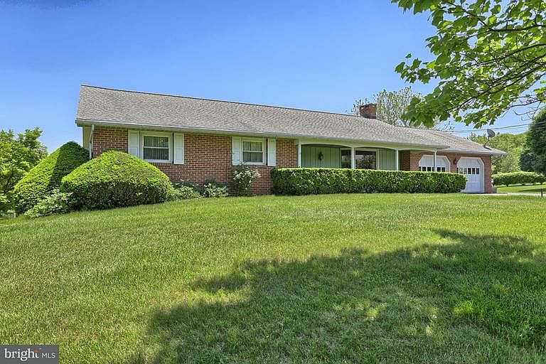 One floor living in the country, yet close to amenities. All brick ranch home with walk-out basement on 1+ acre lot. Main level consists of entry foyer with large coat closet, sunken living room with wood-burning fireplace, Heffleger kitchen with breakfast area, small office, three bedrooms and one spacious full bath with tub and walk-in shower stall. From the sliders in the breakfast area, you can go out to enjoy your new 40 x 10 Trex deck. And there's an oversized 2-car garage (25' x 32'). The lower level has a huge fam. room and office area, as well as a combo laundry room and half bath. There's sliders from the fam. room onto a large concrete patio. And there's a huge storage/utility room with another door to the rear yard. Most replacement windows (others are original Anderson), two zones heating/cooling (one each level), newer furnace and central air, newer roof. Original one owner home, well-cared for, and you'll likely want to do some updating, which could include the bathroom, kitchen (no dishwasher, formica countertops), painting and some flooring. Solid home in a great location!