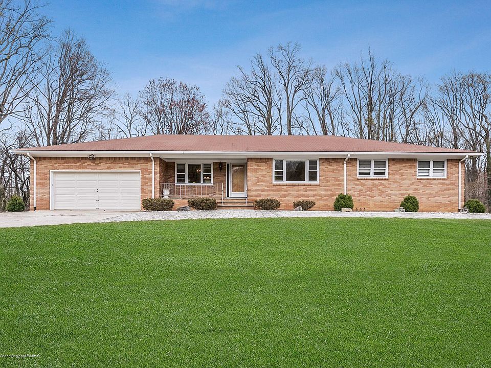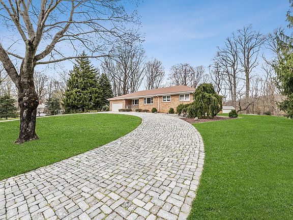 Wrapped in a brick exterior is this sprawling ranch boasting expansive rooms, easy flow, and open floor plan. Enjoy a generously sized living room, formal dining room, large eat in kitchen (with all SS appliances) which opens to inviting family room with wood burning fireplace adorned with stone surround. Conveniently located off the family room through French Doors is a large, 4-season sun room w/walls of windows to enjoy this home's professionally landscaped 1.75 acre setting on a private cul-de-sac. Added bonus is the finished basement with the 2nd fireplace in the home. Ideally located within minutes to top-rated schools, shoppings, transit, major highways, parks, and much more!