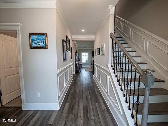 This home comes complete with notable features such as LVP flooring and crown molding in the kitchen, great room, dining area, and foyer, wainscotting in the foyer and up the stairs, oak tread stairs, epoxy garage floor, natural gas hot water heater, and gas HVAC. The Sanctuary at Forest Sound, centrally located in Hampstead, positions you just 15 minutes away from Wilmington or Surf City/Topsail, and a mere mile from the Intracoastal Waterway.