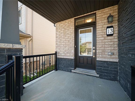Welcome to 13 Amos Avenue in Brantford’s sought-after Empire South community, a vibrant, family-friendly neighbourhood on the rise. This pristine 3 bedroom, 2.5 bathroom end-unit townhome offers 1,655 sq. ft. of living space, complete with a single-car garage, and the added potential of an unfinished basement. The main floor opens with a tiled foyer, complete with inside access to the garage and a convenient 2-piece powder room. A bright, open-concept layout connects the great room and eat-in kitchen, where 9-foot ceilings and expansive windows fill the space with natural light. A blend of tile and hardwood flooring adds warmth and durability throughout. The kitchen offers ample cabinetry, stainless steel appliances, and sliding doors that lead directly to the backyard, complete with a gas line for BBQ hookup for easy indoor-outdoor living. Upstairs, hardwood flooring continues through the main staircase and hallway. The primary bedroom offers a walk-in closet and a 4-piece ensuite with a soaking tub and separate tiled shower. Two additional bedrooms, a second 4-piece bathroom, and the convenience of bedroom-level laundry complete the upper floor. The unfinished basement provides excellent potential for future living space or storage, featuring large basement windows and a cold cellar. The backyard offers plenty of room to enjoy. Located in a growing, family-filled neighbourhood, this home is surrounded by new development and community growth. Don’t miss your chance to make this beautiful home yours—schedule a private showing today!