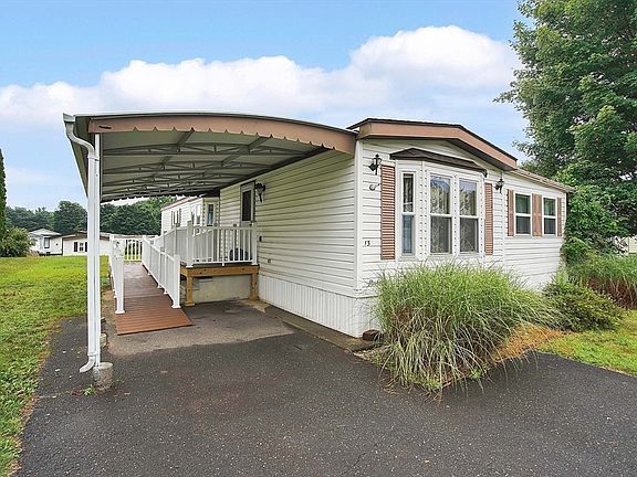****OPEN HOUSE CANCELLED*****Welcome to Brush Hill Estates, a vibrant 55+ community designed with your comfort and convenience in mind! This charming home offers a serene and spacious living environment with an open floor plan.Featuring two inviting bedrooms, including a primary suite with a generously sized bathroom complete with a separate shower and bath, you'll find everything you need right at your fingertips. The kitchen boasts an abundance of cabinets, providing ample storage and functionality, while skylights throughout the home enhance the natural light and create a warm, welcoming atmosphere.Recent upgrades include a new roof, new skylights, and a newer HVAC system with central air, ensuring your home remains comfortable year-round. A new ramp has also been added for ease of access. The living room showcases custom cabinets.Additional features include a convenient laundry room with extra cabinets for additional storage, and a lovely deck off the back—