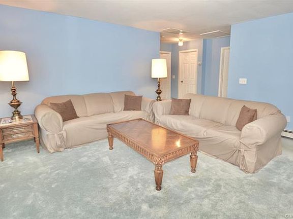 This Ranch home has 3 large bedrooms, 2 full bathrooms, living room, dining room, kitchen, eating area, family room, large deck, spacious basement, 2 car garage, covered front porch and welcoming landscaping. Located in Tuscarora Village just around the bend from Delaware Water Gap. There is a full basement that can be converted to more living space. The backyard is nicely manicured and offers a large deck for entertaining. The primary bedroom, is en suite with a large walk in shower and also has a walk in closet. The home uses propane and has central AC. No shortage in cabinet space in this kitchen, tons of room and lots of counter space along with a full size pantry.Great location to I80 for commuting.