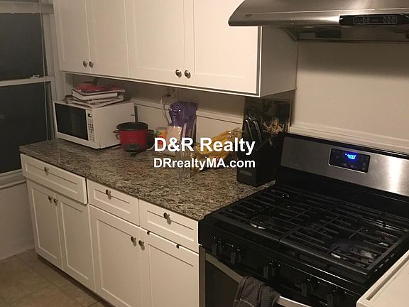 Large 4 BD 1BA. Great location, 4 blocks east of Davis Sq. New Granite counter tops along with new white modern cabinets. 4BD apartment one of the bedrooms is an enclosed porch but very spacious living room and kitchen. Common front porch and huge side and rear yard. Granite kitchen with stainless steel appliances. Bathroom is tiled and modern. 3rd floor in a three unit triple-decker building. 3 full sized bedrooms, one large in area but narrow rear enclosed private porch, large eat-in kitchen & living room, great regional views, very sunny. Common front porch and huge side and rear yard. Granite kitchen with stainless steel appliances. Bathroom is tiled and modern. Parking: On street. Utilities: Utilities are not included. Gas stove, gas-fired hot air heat, gas water heater. Common washer/dryer coin-op. Pets: 1 pet allowed. No additional fee. Available 9/1