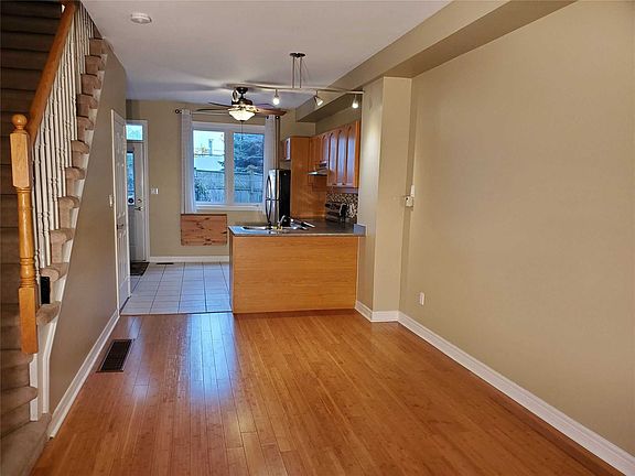 Turn-Key Move-In Ready Townhouse Located In Quiet Cul-De-Sac. Open Concept Main Fl -9 Ft Ceilings, Spacious Kitchen - New S/S Appliances, W/Out To Huge Deck& Fenced Backyard. 2nd Fl - 2 Bdrms, Large Closets, Full Bthrm& Washer/Dryer. 3rd Fl - Master Bdrm With Large Closet, Full Bthrm, Balcony &Space For Home Office. Basement Fully Finished.Ideal For First Home Buyer Or Investment Property Rent For $3000/Month.Excellent Value For Money!