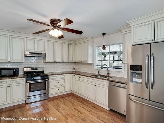 A Beautiful Gem in Oceanport! Lovely Ranch on an 100' x 113' Property with Mature Trees and Lush Greenery! 3 Bedrooms with a Den and two full Baths! Ready to move in - freshly painted and updated baths! Gleaming Hardwood Floors Throughout! Newer Kitchen with Granite Countertops and Stainless Appliances! Newer HVAC System (2020)Nautical Shiplap greats you as you enter the Living room! ( also in the Master Bath!) Property has two Patios and still has plenty of room for a Pool!Quick closing is possible- Close to Beaches, River and NYC Transportation- Great Restaurants too! Enjoy your summer in the Great Town of Oceanport