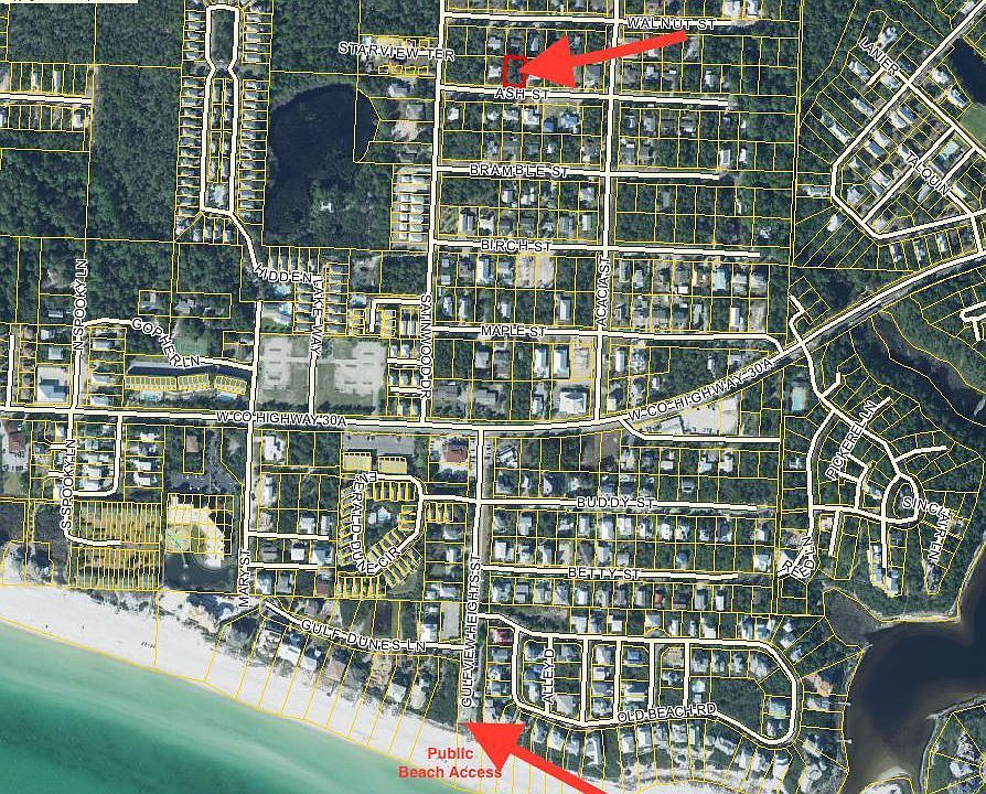Great building lot located just steps from Hwy. 30A and the Beaches of South Walton. No HOA fees and lot is located in Flood Zone X ''no flood insurance required by a lender''. Lot is approximately 1/2 mile from the beach.