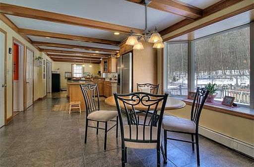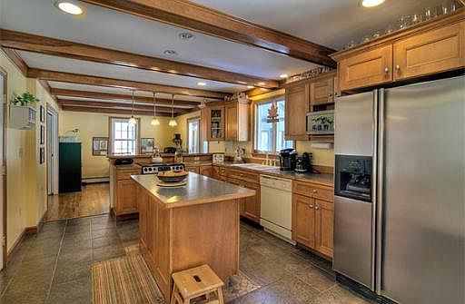 Great location for this 4 bedroom, 2.5 bath Gambrel with many impressive features located in small cul-de-sac neighborhood. Fantastic fully applianced tiled kitchen with dining area and breakfast bar. Formal dining room. Spacious living room with pellet stove. Master bedroom suite. Hardwood floors. First floor laundry. Finished room in lower level offers great space for playroom or many other uses. Sunroom room with gas stove overlooking beautiful back yard with inground pool, hot tub & more. Wrap around farmers porch. 3 zone heating. Replacement windows. 2 car attached garage. New septic system installed in December 2010. A great property!