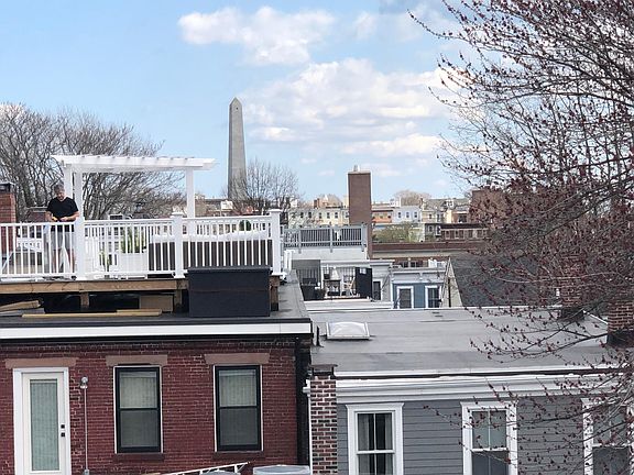Start your summer off by moving into this sun-drenched, oversized penthouse 1 bed, 1 bath with 2 private roof decks. Located on gaslit, tree-lined Auburn Street inside a stately brick building, this front-to-back unit offers plenty of room for living, dining, and entertaining. It is a top-floor treasure with the classic features of a Boston brownstone: exposed brick, high ceilings, and hardwood floors, combined with the modern flow of an open floorplan. Skylights and numerous windows bring you daylight year-round and six closets within the apartment make city life organized and easier. The updated kitchen features stainless steel appliances, quartz counters, and white cabinets. One deck is located just off the kitchen and offers access to the 12'x12' roof deck with a view of the Monument. The basement offers private laundry and a personal storage area. The 92 and 93 buses are only half a block away; Bunker Hill and Sullivan Square T stops are only minutes away. Brokerage fee equal to one month's rent to be split between listing brokerage and tenant brokerage. Pictures were taken prior to current tenants moving in; kitchen cabinets are now white. Tenants in place; 24 hour notice to show requested. Owner pays water, sewer, and refuse removal.
