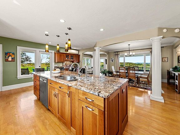 Nestled on an expansive 3.6 acre lot, this elegant house is the perfect place to call home. Stunning views of the New Hampshire countryside surround the home bringing with them a sense of peace and tranquility. A gorgeous open floor plan includes high ceilings, spacious rooms, large windows, and plenty of natural light. Attention to detail shines in every room with beautiful updates, from the Maple hardwoods, to the radiant heat and the 4kw solar system, and brand new roof. The Primary Bedroom is a retreat with a sitting room, and the gorgeous bathroom has a soaking tub and steam shower. The custom designed chef’s kitchen is perfect for entertaining, and features Maple cabinets, top grade granite countertops and SS appliances. An additional 3 car timber barn with plenty of storage on the second floor. The outdoor living is breathtaking and includes a spacious backyard, mature landscaping, a covered porch and a large patio. Centrally located in Bow, one of the best places to live in NH, this timeless home is close to highly rated schools.