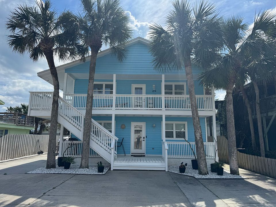 Welcome to Paradise! Imagine waking up to the sunrise over the ocean, sipping your morning coffee from the comfort of your airy porch swing. This beautifully remodeled second-floor unit 2-bedroom, 2-bath retreat is perfectly situated just steps from the beach offers serene ocean views and a peaceful atmosphere. Inside, you'll find two sizable bedrooms, a roomy living area, ample dining space, two full bathrooms, and a well-equipped kitchen with plenty of storage, countertop space, and a convenient bar top. There's also a laundry room for added convenience. The location is ideal, within walking distance of a variety of restaurants, bars, shopping venues, and entertainment options. Just minutes away, you can explore downtown St. Augustine, Matanzas Inlet, and all the historic and cultural attractions the area has to offer. Don't miss out on the chance to experience beachside living at its finest in this delightful St. Augustine retreat! One year lease, smoke free unit