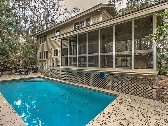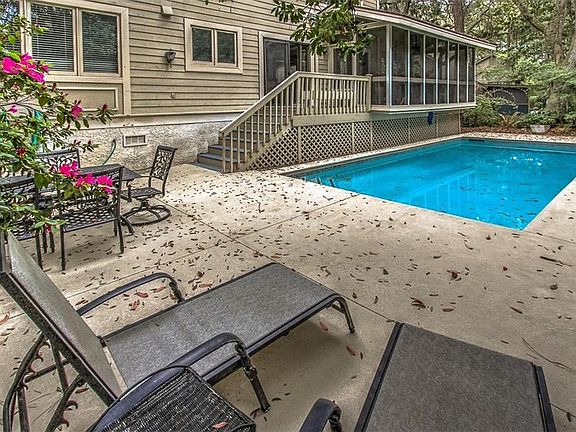 Wonderful 4 BR, 3 1/2 BA home in South Beach with screen porch, pool & 2-car garage! Master on first floor. Updated interior. Peacefully located on quiet cul de sac. Walk to Beach from paved walkway right around the corner. Walk to Salty Dog! Enjoy the gorgeous MARSH VIEW from the HUGE VACANT lot across the street with 200 feet of marsh views from the front of the house.