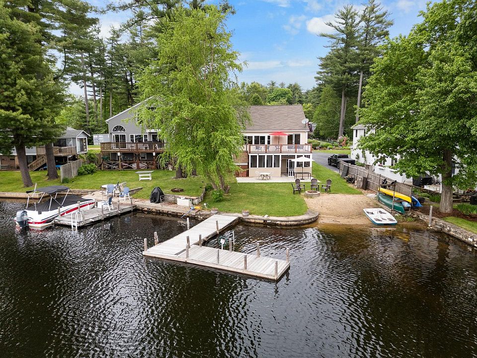 This charming single-family home located on Arlington Pond at 13 Ball Ave, Salem, NH was built in 1953 and offers an open and inviting atmosphere. With 3 bedrooms, 1 full bathroom, and 1 half bathroom, this home boasts a total of over 2,500 square feet of finished living space spread across 3 stories. Situated on a waterfront lot spanning 13,068 square feet, there is plenty of room for outdoor activities and entertaining. With its convenient location and ample space, this home is perfect for those seeking a comfortable and welcoming place to call their own. Located on a quiet street with plenty of sunshine enjoy all 4 seasons in this well loved and cared for home. Memories will be made to last a lifetime. The open floor plan is ideal for entertaining on the first floor and even more so when you go to the finished walk out basement and the inviting patio. Once outside enjoy the yard and beach and venture to your own dock for fishing or boating.