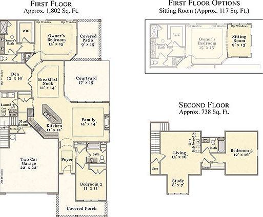 McKee Homes presents the Portico Bungalow, a beautiful cottage-style home with three bedrooms and two bathrooms. The oversized two-car garage makes for ample storage space. This home features a large, open floor plan, including a den off the dining room for an extra study or craft room. The master suite features a large, walk-in closet. Options such as a sitting room off the master bedroom allows for additional space to relax. The Portico Bungalow includes a second-story bonus suite with full bath with optional kitchenette which is perfect as a guest suite or game room. The Bungalow Collection includes distinctive exterior styled roof lines and supports.
