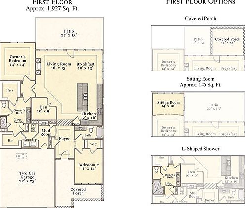 McKee Homes presents the Torino II Craftsman, a beautiful, two-bedroom, two-bathroom cottage-style home. This home features an open floor plan with a large kitchen with island, living room, breakfast area and den in the main living area. The master suite features walk-in his-and-hers closets, as well as options for covered rear porch, sitting room overlooking the courtyard and large L-shaped shower in the bath. The Craftsman Collection floor plans include all the great features of our Classic floor plans with custom exterior details that give these homes distinctive elegance and refinement. A blend of stone, siding and specially styled roof lines and supports give our Craftsman Collection a custom upscale look.