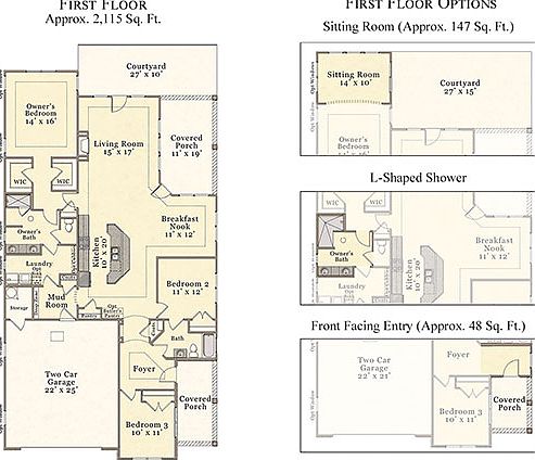 McKee Homes presents the Verona Craftsman a beautiful cottage style home with three bedrooms and two bathrooms. This home features a large, open floor plan with gourmet kitchen and a large kitchen island. The low-maintenance courtyard features a covered porch and is perfect for entertaining or keeping a small garden. The master suite features walk-in his-and-hers closets, as well as options for a sitting room overlooking the courtyard and large L-shaped shower in the bath. The Craftsman Collection floor plans include all the great features of our Classic floor plans with custom exterior details that give these homes distinctive elegance and refinement. A blend of stone, siding and specially styled roof lines and supports give our Craftsman Collection a custom upscale look.