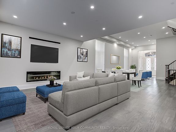 Welcome to luxurious designer home in prestigious Valleybrooke Estates, offered for lease! Live in style in this stunning, custom-designed home just steps from Cortellucci Vaughan Hospital, scenic trails, top schools, parks, shops, and modern upscale amenities. This stunning home features a breathtaking open-concept layout with soaring 12-ft ceilings on the main floor and 2nd floor media room, and an impressive 13-ft ceiling in the primary suite and 9 ft ceilings in 2nd floor bedrooms & basement; grand foyer with double entry doors, 3 full bathrooms on the 2nd floor, walk-in closets in all 4 bedrooms; sidewalk free lot that parks 6 cars total; hardwood floors throughout main & 2nd floor; smooth ceilings throughout; porcelain tiles; upgraded baths; LED pot lights; fully finished basement with an extra bedroom and 4-piece bathperfect for guests or a home office! Enjoy a stylish eat-in kitchen with granite countertops and stainless steel appliances, flowing seamlessly into a spacious family room with a sleek Napoleon 68-inch linear gas fireplace. Entertain effortlessly in the vibrant dining and living areas, all designed with luxury and comfort in mind. Retreat to the grand primary suite offering a 7-piece spa-like ensuite with a freestanding soaker tub, custom silhouette blinds, and generous walk-in closets. This upscale gem is move-in readymove in and experience stylish living!