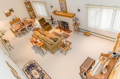 - Liv Dscrp: Flooring - Wall To Wall Carpet, Fireplace, Ceiling - Coffered