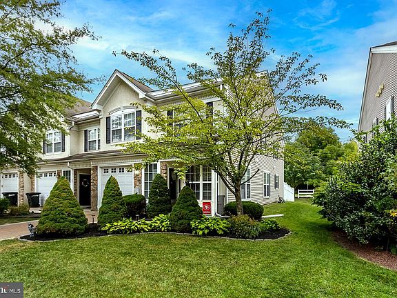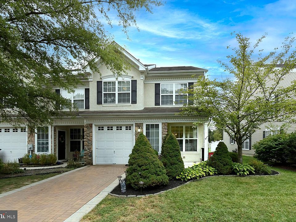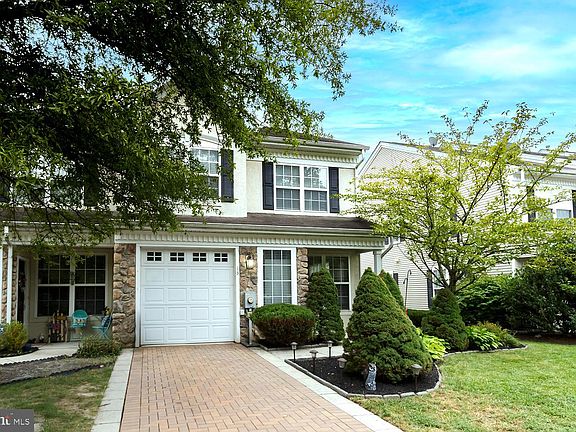 Fantastic end unit townhome in Westampton woods is now available to be called home. With curb appeal including plenty of front yard greenery, this home with its stone accented façade welcomes you onto the front porch and an entrance with hardwood flooring, wainscotting and trim in crisp white adding a nice, detailed touch as your eye moves through the living room and into the dining room. The hardwood flooring picks up again at the family room and kitchen area which create and enhance the open floor plan. The room sizes are generous throughout the home and the family room offers a flood of natural light with plenty of windows and the two-story height of the ceiling. The kitchen offers tons of working and storage space with tall cabinets, plenty of countertops in granite and stainless appliances. The kitchen also offers a pantry closet, an eat-in dining area and sliding door that leads onto the patio and private, fenced backyard. A half bath and garage access complete the first floor. Upstairs is a convenient laundry area and a full hall bath, shared by two bedrooms and the primary suite which features a private ensuite bath. As an end unit, this home brings plenty of natural light in from the added windows on both floors.