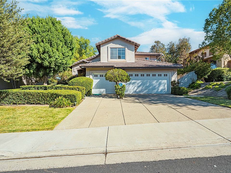Welcome to "13 Bella Donaci," a Tuscany Hills former model home with a water view of Canyon Lake below. No homes across the street. 1 spacious bedroom downstairs, separate living and family room with a cozy fireplace! Separate dining room off kitchen. Cathedral ceilings and ceiling fans give you an open feeling as you enter. Eat in kitchen area, stylish granite countertops and an Island. Walk in pantry, stainless gas stove & dishwasher to name a few features. Kitchen window overlooks the back yard with lots of birds and mature trees. Primary bedroom is on the 2nd story with a viewing deck, slider, and electric shade in the summer months. Deck has been restored! Escape and enjoy your favorite beverage and a sunset! Primary bath features a separate shower and soaking bath tub. Walk in closets have lots of room and storage. 2 secondary bedrooms upstairs are spacious with large closet space. Lots of storage and work bench located in the 3 car garage. Pull down ladder up to extra storage for Christmas stash is always a bonus. Lush landscaping gives a lot of shade. You are conveniently close to the Association pool & spa, rec room, gym, sports courts and more. Settle in before the holidays.