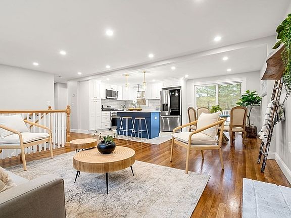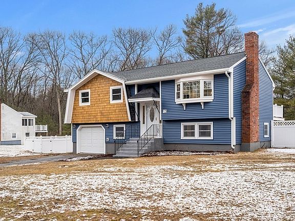 Welcome to your dream home! Pride of ownership is evident in this simply beautiful, meticulously maintained and carefully updated home. Situated on a little more than 1/2 an acre on a corner lot in a desirable neighborhood. This home features a spacious open concept living room, kitchen and dining area with refinished hardwood floors throughout, a new bay window with lots of natural light and a stylish updated bath. You'll love the modern kitchen complete with new cabinetry, new appliances, an island and quartz countertops. Off the kitchen, step through the sliding doors onto your deck overlooking your huge, fenced-in backyard and inground pool – perfect for outdoor entertaining. The cozy lower level has new flooring and a fireplace for added warmth during those chilly months. There is also a full bath, a bonus room and easy access to the 1 car garage. Minutes to I93, the commuter rail stop, as well as being just a short distance from Silver Lake's beach - it's easy living at its best!
