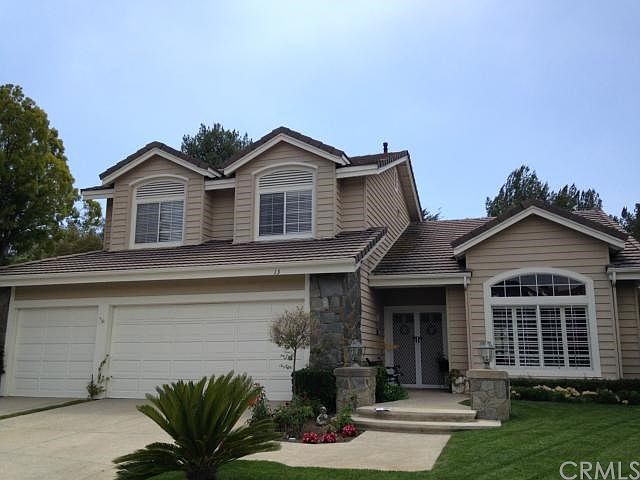 Unique open floor plan with Master Bedroom on Main Floor. Lives like a single story. 3 other bedrooms upstairs. Large Private lot backs to Coto Estates and Equestrian trail. Very quiet with 2 large side yards. Kitchen with granite counter accommodating 4 barstools. Custom granite on all counters and backsplash as well as in all Bathrooms. Eat in kitchen open to the family room with views of pool and spa, side yard and sunset. No one behind! 3 car garage with storage in garage and attic. Entertaining back yard with large counter (seats 4 barstools) and built in fire magic grill plus charcoal grill. Electric awning across most of the back. Bay window over kitchen sink. Island stove. Level floors inside and to patio with flat back yard. Deep soaking tub in master recently tiled plus roll-in shower with shower seat and grab bar. Home is possibly handicapped accessible or just easy living! Enjoy the Dove Canyon lifestyle with clubhouse, community events, parks and beauty. Social, golf and tennis memberships available.