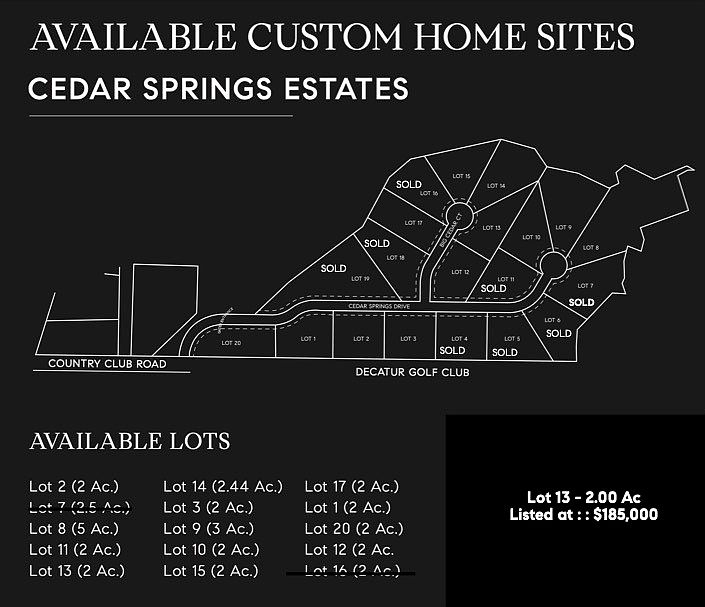 - Parcel number: Cedar Springs Lot 13