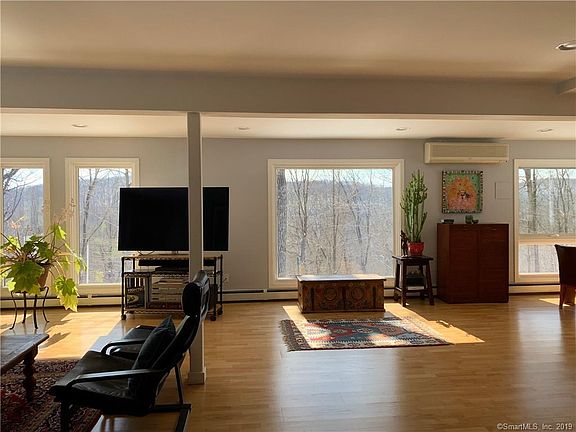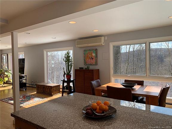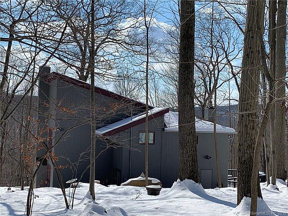 Peace and Tranquility awaits, welcome to Timber Trails, a private community in southern Sherman. Completely renovated in 2004, move-in-ready contemporary is waiting for you to call 'Home'. Walls of windows capture nature's beauty and sunlight, highlighting the open floor plan and uniqueness of this home. A perfect layout for entertaining, the kitchen has a contemporary look and feel with flat front cabinets, granite counters, stainless steel appliances & island, and opens to the dining room with wine cooler and gorgeous family room with fireplace and forever views of the vast forest outside your door. A large bedroom on the upper level bedroom has incredible views, a full bath with tub, shower, tile floor, granite vanity and opens to the master bedroom and hallway. The master bedroom is spacious with exposed beams, hardwood floors and has a walk-in-closet with built-ins. New insulation, walls, electric, siding, roof, windows, virtually rebuilt! Three high-efficiency ductless split central air units with humidifiers and oil heat keep the house comfortable all year long. Fenced-in backyard is perfect for small children and pets and is adjacent to over 1,100 acres of Pootatuck State Forest and hiking/riding trails. Spacious mahogany deck and storage shed. Only 65 miles from NYC, this home is a perfect getaway, located near the NY border, close to MetroNorth trains, has rights to Candlewood Lake at the Sherman town park and low taxes, too! Fall in love with Sherman, Welcome Home. Hiking and riding trails are just beyond this house at the end of the road. Community well $25/mo, electric cost is $80/mo, 700 gallons of oil consumed/yr. The Timber Trails HOA (TTSCS) fees are $276/qtr - this covers road maintenance. The fireplace in the family room is capped off/closed - it's not used. Attic has electrical installed for future expansion. Storage shed under the mahogany deck. This home is being sold furnished at no additional value - for the convenience of seller and buyer - ask listing agent for details.