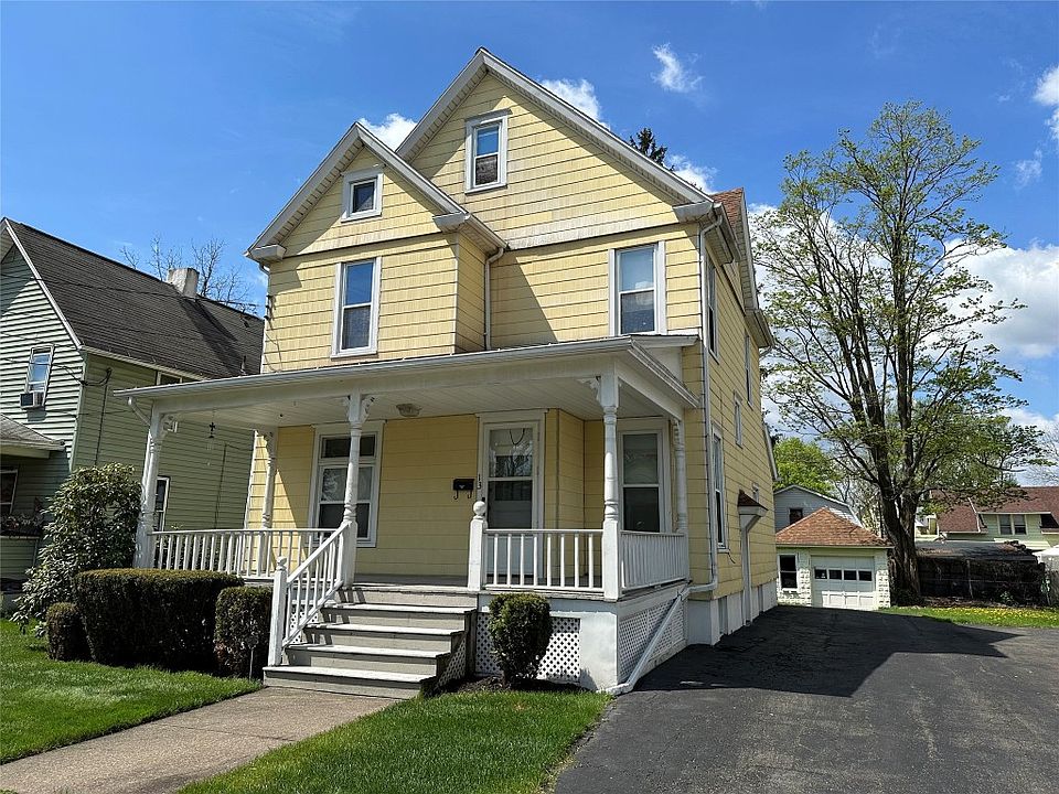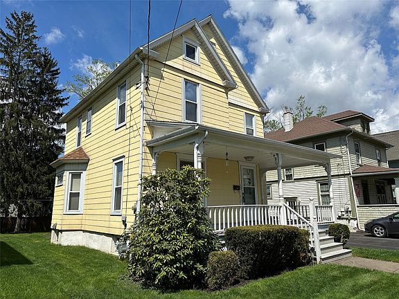 Some houses just show that they have been lovingly cared for, and this is one of them. Owned by the same family for 60 years, and well taken care of all those years. You will feel the charm starting at the large covered front porch with original painted porch posts. Front entry walks you through a preliminary foyer before you enter the house. Open doorways of the foyer, living room, and dining room flow space to space. Large eat-in kitchen has plenty of cabintry for storage and the large west facing window lets in plenty of daylight. Kitchen dining area has room for a table for 6. Kitchen back door opens to a spacious concrete patio. Second floor offers 4 bedrooms if you need them or use one as an office or dressing room. The large unfinished walk-up attic is great for storage or future expansion. There is new electric throughout the second floor with all new wiring. New smoke detectors are hard wired and connected for safety. Backyard is partially fanced w/border gardens