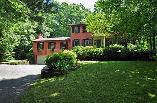 This impressive brick colonial is privately set back off the road. The floor plan offers a spacious kitchen open to dining area & family room with custom built stone fireplace. Recent improvements to the kitchen include; granite countertops with a tile backsplash, new sink, faucet and freshly painted. The additional living room, with fireplace, has an adjacent bedroom plus full bath which is ideal for guests or inlaw situation. First floor office plus formal dining room. Access the oversized deck from the dining area or family room & relax in the hot tub which overlooks the serene wooded back yard setting. Master bedroom suite offers a walk in closet with a full bath and jacuzzi tub and shower. The additional finished room in basement is great for guests. 9 minutes to downtown Northampton. Truly a great home in a lovely, quiet, established high-end neighborhood.