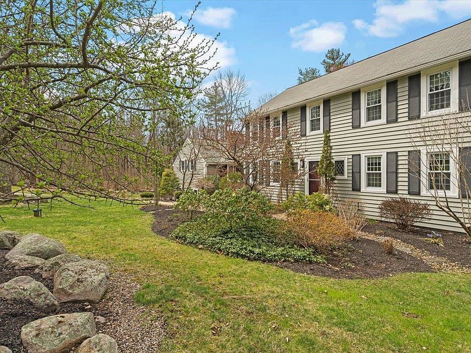 **OPEN HOUSES: Saturday, 4/30 from 10am-11:30am & Sunday, 5/1 from 1pm-2:30pm** This charming colonial with beautiful perennial landscaping is located on a quiet circular drive in desirable Bedford, NH. Inside you'll find a front-to-back living room with gas fireplace, a formal dining room, and an eat-in kitchen featuring a center island, granite countertops, and plenty of cabinet and built-in storage space. The bright den with glass doors to the back yard is perfect for use as a sitting area or as a home office. A highlight of this home is the over-sized bonus room with vaulted ceilings and a wet bar, making it the ideal indoor space to entertain all of your guests. The second level features a large primary bedroom with double closets and ensuite bath. Three additional bedrooms and a second full bath complete the second floor. The walk-out basement includes a finished family room, a 3/4 bath, and laundry room. The remainder of the basement is partially finished and is perfect for use as a workshop or for additional storage. The backyard offers plenty of opportunities for enjoyment whether its spending hot days lounging by the pool, evenings on the screened porch, playing lawn games in the level grass yard, or toasting marshmallows by the firepit. Don't miss out on the chance to live in this quiet neighborhood setting with award-winning schools, and easy access to tons of outdoor recreation.