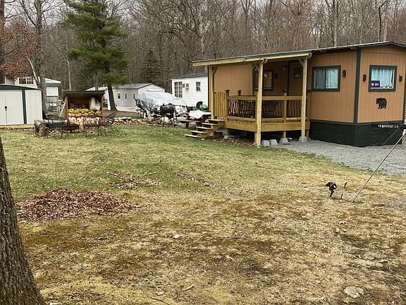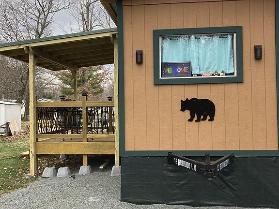 This is your chance to own your own home near Lake Wallenpaupack! Enjoy boating, hiking, fishing and many extras. This privately gated community is located in Big Bear and is NOT ON LEASED LAND. Located within two miles to the public boat launch on Lake Wallenpaupack. Situated on the largest lots in community. This home comes completing furnished, included two sheds, picnic table, heated hose and heated hydrant for winter camping. There is enough room on the lot to park your boat. Built in 2021 this home sleeps 4, and has a new metal roof. Amenities in community are outdoor pool, horseshoe pits, fire pits and many more. This is also a great rental through air bb. Move right on in with this fully furnished home and enjoy Lake Life!