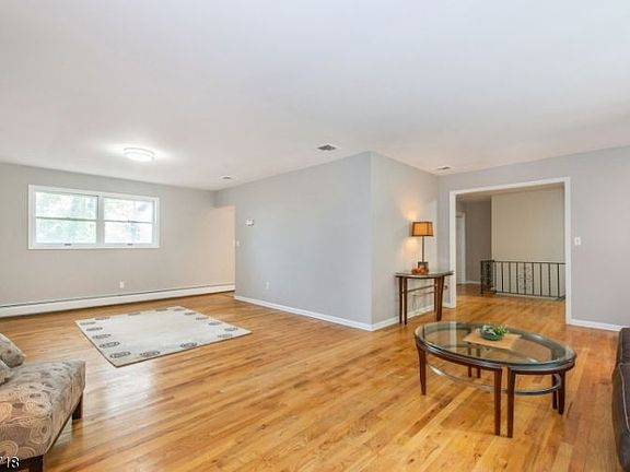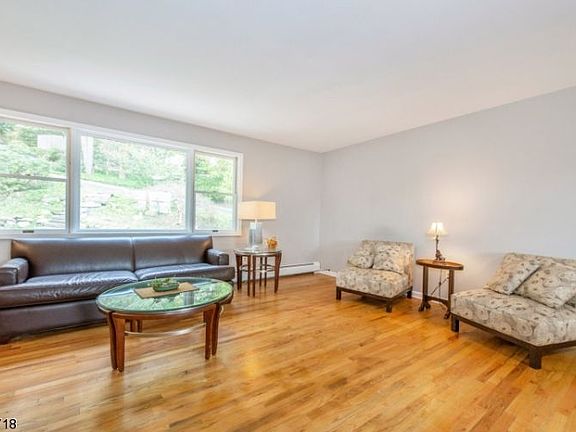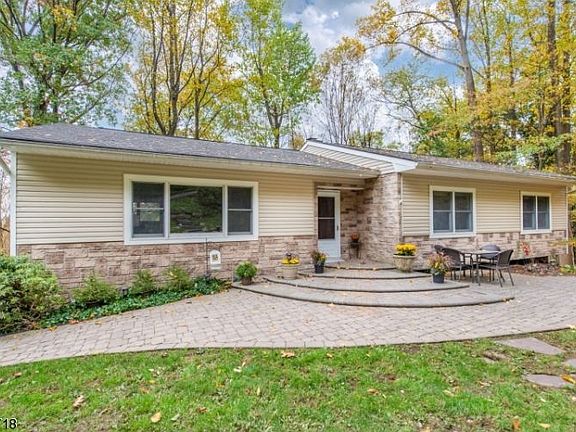 Move right in to this Completely freshened, truly spacious Ranch that begins with gracious entry foyer boasting wood floors which continue thru entire main level including hallway and 3 generous sized BRS. Large windows in LR, DR and kitchen bathe this home in lots of light. All rooms have been FRESHLY PAINTED in lovely neutrals of the day. Eat-in- kitchen has cabinets and counter space galore plus roomy eating area and super pantry storage closet. Laundry room conveniently located adjacent to kitchen. Master BR has double closets and Master Bath with oversize shower. On lower level there is powder room and Huge Amazing Family Room with Brick Fireplace for cozy evenings PLUS a Kitchen Bar area great for ease of entertaining or M D potential. Sliders from Fam Rm bring you onto large deck that overlooks treed backyard. Outside there's charming wood shed, vinyl picket fence, paver patio area in private front yard that's distinctively landscaped with evergreens and flowering bushes. All this is on .86 acres, close to NYC transportation, shopping, dining and major hiways. **Bonus reasonable Morris County taxes**.