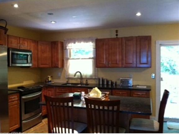 Welcome Home! Here is a cozy and adorable 3 bedroom, 1 bath, raised ranch with full finished basement that could be a family room, recreation room or a master bedroom, lower level also has laundry room and a spare room that can be an office or pantry, nestled in a quiet residential area that backs up to the woods and set back off the road with plenty of off street parking and a 1 car attached garage. The kitchen has been updated with granite counter tops, stainless steel appliances, has an eat-in area, breakfast bar/island and sliders to the deck off the back of the house. Located close to major highways, shopping and dining. House is being sold AS-IS.