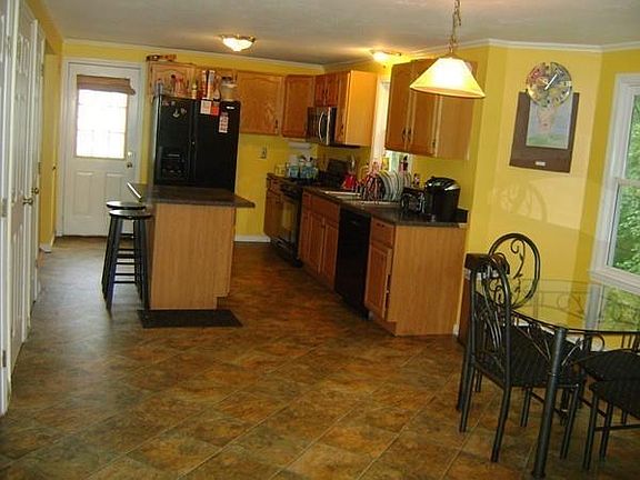 Center entrance colonial featuring 7 rooms, 3 bedrooms, 1.5 baths. Open concept floor plan on first level. Fully applianced spacious kitchen with dining area. Front to back fireplaced living room with beautiful hardwood floors. Formal dining room with hardwood flooring. Huge master bedroom with walk-in closet. The master bedroom is large enough to have a computer or reading area. Walkout lower level is finished with high ceilings and great for a family room, playroom, office or exercise room. Nice size deck and shed. Easy commuting location and close to shopping and recreation.