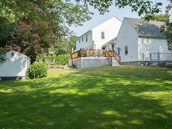 GREAT HOME PRICED TO SELL! Colonial style home situated on a lovely lot at the end of a dead end street in a quiet neighborhood and close to rte 495 and 109. This home features 4 bedrooms, 2.5 baths, a beautiful fenced in and landscaped back yard with an in ground swimming pool, a storage shed, and plenty of privacy.The first floor offers a spacious family room with beamed ceiling, wall to wall carpeting, and a fireplace.. The bright dining room and living rooms have beautiful hardwood flooring, a comfortable eat in kitchen with quartz countertops, and a half bath and laundry room. The 2nd floor offers 4 spacious bedrooms and 2 full baths. The master suite is front to back, complete with a walk in closet, and a full bath with tile floor and vanity. Enjoy the two bonus rooms in the basement, currently used as an additional family room and exercise room, both with recessed lighting. There is ample room for storage. OPEN HOUSE SATURDAY 9/9 AND SUNDAY 9/10 FROM 11:00-1:00
