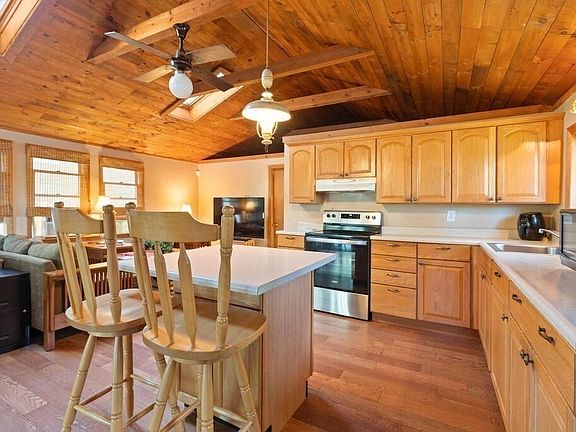 - Features: Ceiling Fan(s), Vaulted Ceiling(s), Flooring - Hardwood, Kitchen Island