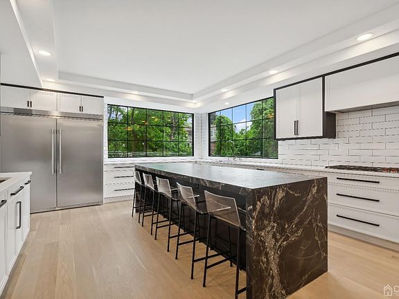 Indulge in luxury living with this impeccably crafted custom home boasting high-end designer finishes throughout. With a total of 5 bedrooms, 3 full bathrooms, and 2 half bathrooms, this residence is designed for comfort and sophistication. The allure begins with striking Black Anderson windows and sliding doors that enhance the home's modern aesthetic. Enjoy effortless control with a sprinkler system featuring convenient app programming, alongside outdoor lights and a reliable house generator for added peace of mind. Inside, discover a haven of elegance and functionality. The main level showcases gorgeous light wood flooring, seamlessly connecting the living room, dining room, and a stunning modern designer kitchen. Featuring a leathered granite island with barstool seating, 3 ovens, 2 cooktops, and 3 paneled dishwashers, this kitchen is a culinary enthusiast's dream. Picture windows frame the oversized backyard, while a separate breakfast nook, coat closet, powder room, and walk-in pantry complete the space. Additional highlights include wiring for optional additional lights in the kitchen and bedrooms, ensuring customizable ambiance throughout. The ground level offers a cozy bedroom with sliding doors to the backyard, a convenient half bath, and a versatile 2-car garage currently utilized as a recreational space, featuring a unique custom entrance for added convenience. The basement provides ample living and storage space, including a spacious legal bedroom or master suite option, a private office, and a playroom with built-in shelves. Noteworthy features also include a fully customized laundry room equipped with sink, counters, cabinets, 2 washers, and 2 dryers. Upstairs, four bedrooms feature custom closet systems, with one hallway bathroom and a luxurious master suite boasting double closets, a private bathroom with a double-head shower, and bidet toilets for added comfort. Designed with versatility in mind, this home is thoughtfully constructed to accommodate the addition of another level without the need for extensive renovations. (Rendering of new level available upon request) Don't miss this rare opportunity to own a truly exceptional residence tailored to the highest standards of modern living.