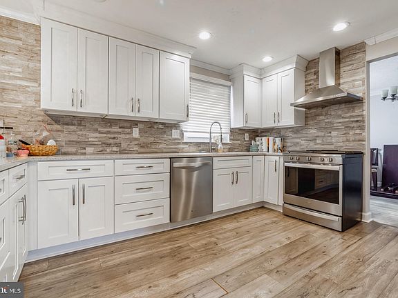 This spacious Chesterfield model boasts durable laminate flooring, oversized crown moldings and chair rail moldings in the living & dining rooms, an eat-in kitchen with newer white shaker cabinetry & pantry, stainless steel appliances, and a 20x20 garage conversion into a living room. The home offers a primary suite with a private bath, a sitting area and a walk in closet, 3 additional bedrooms and a main hall bath. Much of the home has been freshly painted, offers newer neutral carpeting and has been very well maintained. French doors from family room lead to a beautiful patio, a storage shed, fenced rear yard and fire pit.