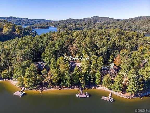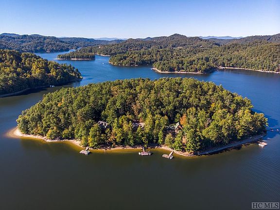 Your dream of living on a private island in the middle of a majestic mountain lake is a reality with this property. The home is located on the Southern facing shore of Buck Knob Island in the middle of Lake Glenville. This property conveys the feeling of secluded living, while remaining completely accessible and convenient to the mainland of the nearby town of Cashiers. Making things even easier for property owners is the full-time caretaker to assist in transportation & maintenance. Buck Knob also offers all of the homeowners access to a cargo barge and boat transportation to and from the mainland. The 5-minute, boat ride is what makes this community unlike any neighborhood or club in the mountains. No cars, no traffic, just golf carts and ATVs roam the roads of Buck Knob. The home was custom designed for mountain/lake life. The large great room arches support the beautiful wooden cathedral ceiling. It is a stunning architectural element not to be missed. The spacious open layout allows for easy flow between indoor and outdoor living. The master bedroom, on the main level, has a large walk in closet designed by California Closets. 2 guest bedrooms upstairs offer guests privacy and plenty of room to enjoy their mountain experience. On the lower level, the bonus room is set up as the ultimate game room. A pool table, shuffleboard table, dartboard and huge television all create a recreational dream for the kids or the kids-at-heart. An additional sunny guest suite downstairs provides more privacy for your friends & family. An attached bunk room allows for overflow on holidays. The outside of this home is as beautiful as the inside. The stone arches of the house show the high quality of craftsmanship invested in the construction. This home is one of the few on the island with a garage and ample storage space. A picturesque potting shed built of reclaimed barn wood is tucked in the woods for the gardener in your family. Most of this home's furnishings are negotiable.