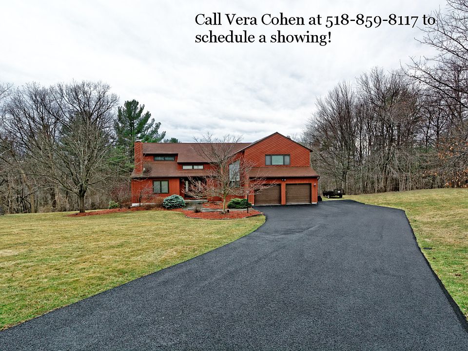 Spectacular view!Meticulously maintained & updated contemporary home is located in prestigious & upscale Green Horizon Estates. Privacy,peace & tranquility ,minutes to downtown Albany,easy access toI90,787.This custom home featuring luxurious master suite, gorgeous Millbrook kitchen, hardwoods, 4bedrooms + office, 3.5baths, in-law potential in the finished walk-out basement w/full bath, in-ground pool, heated garage, central vac.,2.13 meticulously landscaped acre.EGRBUSH Schools