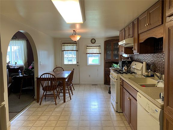 Cozy little home ... move in ready. Spacious kitchen has eat in area if you want, or you could have dining/living room space combined. Two bedrooms off a large hallway area. Master bedroom has walk in closet, and bath with a shower. Newly remodeled bath off the kitchen has a large step in shower. Laundry is off the back entry behind folding doors. Large garage has one garage door opening, but another whole side for work space. Fenced in back yard and small shed for storage. Forced air heat and central air.