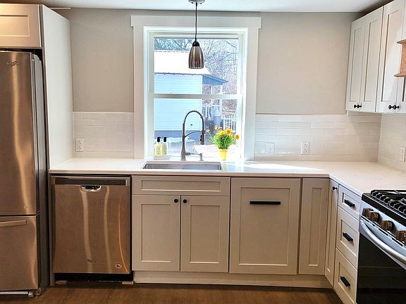 NEW ELGEN SEPTIC SYSTEM being installed ON the property!! This beautiful home has undergone a full renovation and ready to move right in. Inside the house enjoy the brand new bright open kitchen with a propane stove and beautiful copper hood, stainless steel new appliances, quartz countertops, and pantry. Continue into the oversized Living room with new electric fireplace, and closets on both sides of the room making for great storage. There is also a large mud room and full bath with laundry hook ups on the main level. Upstairs there are 3 bedrooms-one with access to large cold storage, and beautiful new bath with walk in shower and tasteful touches like the salvaged barn door. Outside enjoy the new decking, privacy fence, Frontage on the Saranac River, and firepit to enjoy year round. There is also a 27x20 one car garage with epoxy floor, wood stove, and MORE storage. Brand new septic system. Come enjoy this quiet location while only minutes from Plattsburgh!!