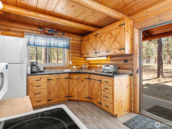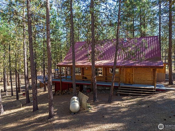 Wonderful log cabin set amongst pine trees on over 2 acres. Solid home featuring one bedroom plus loft living space. There are two fireplaces to keep the home cozy. Enjoy your great room that opens up to the large deck - perfect for entertaining or spending Fall evenings on. Plenty of room for toys and storage in the spacious detached garage/shop with carport as well as the unfinished basement. Great proximity to town and trails. Cool down in the community pool in the summer as well as soak up the year round, near by recreation in the Methow Valley like hiking, biking, fishing, hunting, & skiing. This cabin would make for great full time living or be a wonderful vacation house with easy lock & leave maintenance. Welcome home!