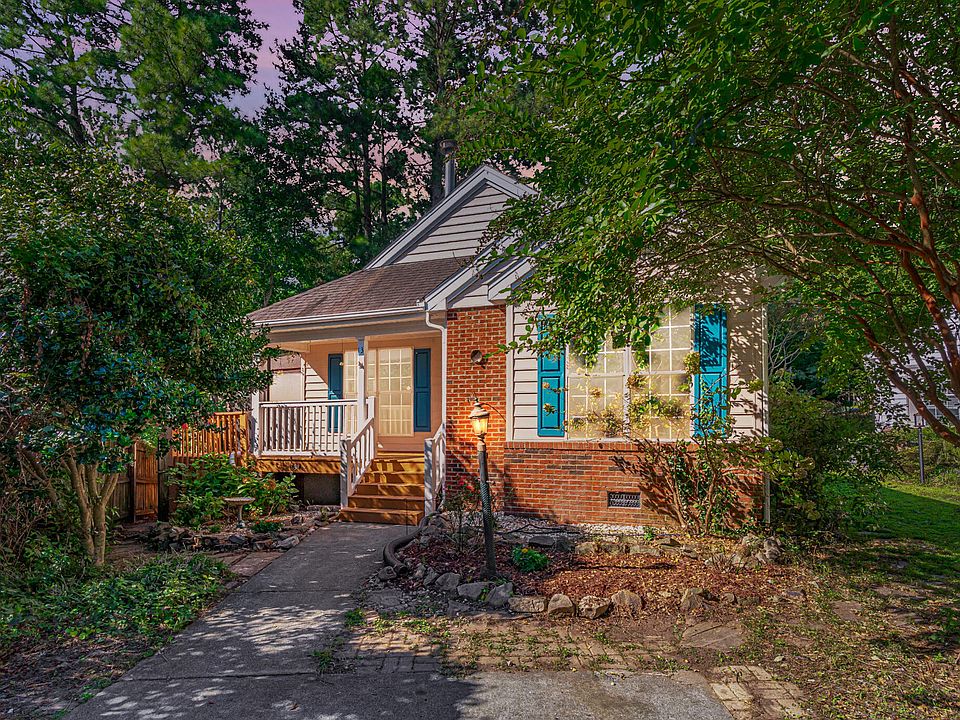 Tucked away on a quiet cul-de-sac, this classic 3-bedroom, 2-bath ranch welcomes you with a wrap-around covered porch that sets the tone for relaxed living. Inside, large windows fill the home with natural light, while the fireplace and open dining area create a comfortable backdrop for both everyday life and gatherings. Directly off the living room, a cozy screened porch offers a peaceful view of mature trees and a seamless extension of your living space. Just beyond the backyard sits Perkins Orchard — Durham's oldest and largest produce market — where you can stroll over for fresh fruits and vegetables whenever you like! The paver patio and shaded yard provide even more space to garden, play, or simply enjoy the outdoors at your own pace. All of this comes with an excellent location just minutes from Southpoint Mall and with easy access to I-40 for a quick commute across the Triangle. Blending timeless charm with everyday comfort, this home is designed to feel inviting from the moment you arrive.