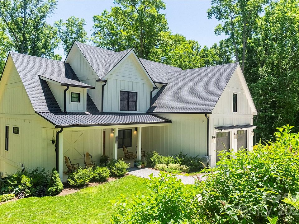 Step into 13 Cambridge Drive, a modern farmhouse that effortlessly blends timeless style with contemporary comfort and indoor-outdoor living. Tucked at the end of a quiet cul-de-sac in Candler, this 3,400-plus-square-foot home features vaulted ceilings, exposed beams and a striking stone fireplace that anchors the open-concept main level. The chef-ready kitchen shines with quartz counters, artisan tile backsplash, farmhouse sink and GE Elite smart appliances, plus a walk-in pantry and multiple prep zones ideal for entertaining. The main-level primary suite is a retreat with deck access, spa-like shower, dual vanity and walk-in closet, while three additional private suites make hosting family or friends effortless (laundry room on every level). A lower level expands your lifestyle with a media room, second living area, kitchenette, full bath, walk-out deck, wine cellar, and bonus room for a gym or extra bedroom. Modern touches like solid core doors, aluminum-clad windows, dual-fuel HVAC, tankless water, EV charging, and hardwired security cameras keep life efficient and easy. Outdoors, enjoy 140 feet of covered porches and decks, a fenced front yard for privacy, mature landscaping, a serene stream and a low-maintenance lawn, all ideal for relaxing, grilling or hosting. Oversized garages and extended lot lines give room for RV parking, trailers or future projects. Just 15 minutes to downtown Asheville with quick access to the Blue Ridge Parkway, trails, shopping and highways, this home is the ultimate combination of modern style, mountain charm and lifestyle-ready living.