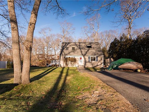 Welcome to 13 Canterbury Drive, a charming contemporary Cape nestled in an established Bradford neighborhood with convenient proximity to highways, shopping and Coastal Rhode Island's stunning beaches. A fantastic primary residence or vacation getaway option, this home offers an open living room with vaulted ceilings, kitchen that opens onto a wraparound deck and two bedrooms with a full bath on the main level. Head upstairs to a third large bedroom with wide plank pine floors and also a large open loft area, ideal for work or study from home. The lower level boasts a large finished area with additional living space, double sliding glass doors out to the yard and a high quality wood stove which can heat your whole home in the winter and help cut down on fuel bills. Enjoy sunsets on your back deck as you look out on the gently sloping backyard with wooded area and small brook. A must see!